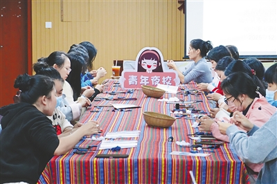 在夜校里,学员们既能从羽毛球、珍珠球、健美健身及八段锦等课程中强身健体,也能通过茶艺、插花、美妆等课程提升审美素养与生活品质,收获愉悦与自信。